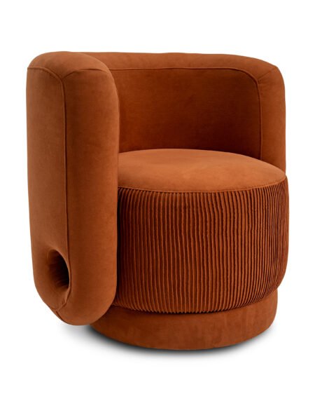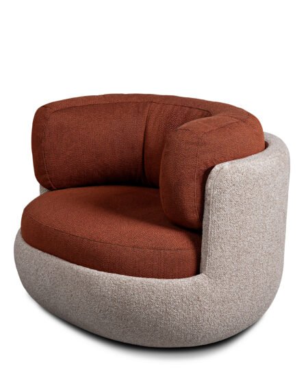 A Poltrona LOOP combina acabamento refinado, tecido de alta qualidade e giro 360° com estrutura em madeira maciça. Design que encanta.