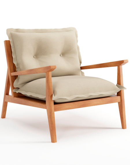 Com design modular e inspiração orgânica, A Poltrona Doim une conforto interno e estrutura resistente. Pés em madeira com sistema giratório e almofadas soltas garantem charme e versatilidade para o seu ambiente.