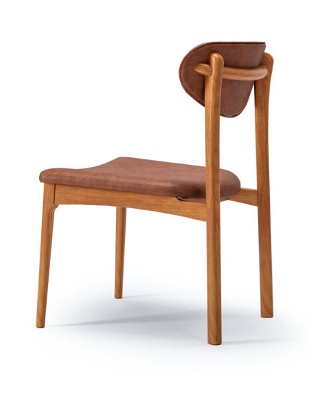 Com estrutura em madeira maciça de reflorestamento, a Cadeira Clarice valoriza a sustentabilidade sem abrir mão da nobreza estética. Seu assento e encosto estofados possuem um formato anatômico que se adapta delicadamente ao corpo, proporcionando conforto prolongado com elegância. A parte posterior do encosto apresenta detalhes visuais leves e fluidos, que tornam a cadeira interessante também quando vista de costas — ideal para ambientes onde o design deve se expressar em 360 graus.