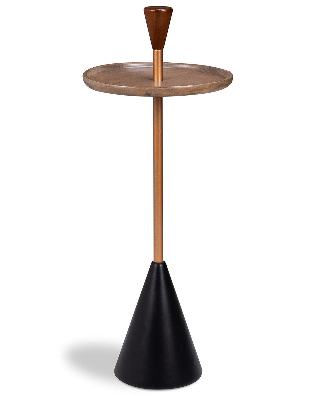 Sua estrutura em metal pintado garante leveza e resistência, enquanto o tampo em lâmina de madeira natural adiciona um toque orgânico e refinado ao ambiente. Essa combinação de materiais cria uma presença marcante, ao mesmo tempo discreta, que se adapta facilmente a diferentes estilos de decoração, como o moderno, industrial, escandinavo ou minimalista.