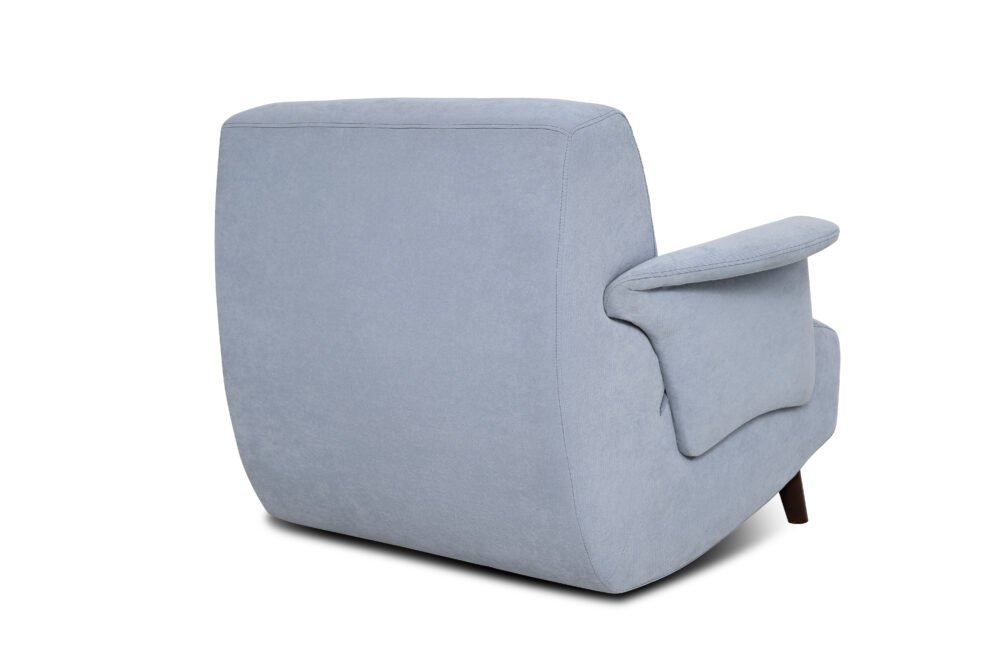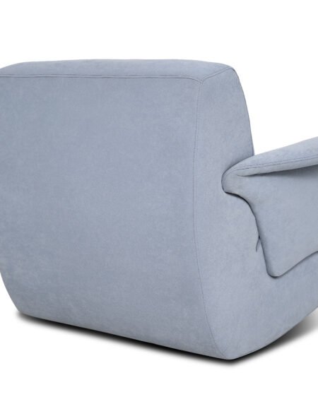 Seu encosto delicado e o assento generosamente estofado criam uma experiência tátil que remete à leveza do ar — perfeita para momentos de leitura, contemplação ou puro relaxamento.