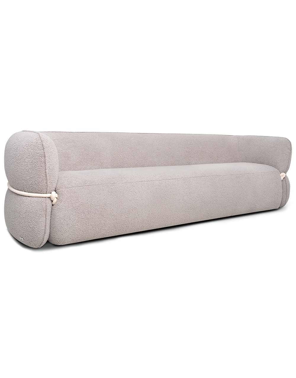 O Sofá Amasso é um convite ao conforto: seu design curvo simula um abraço, com acabamento artesanal e laços visuais que emocionam.